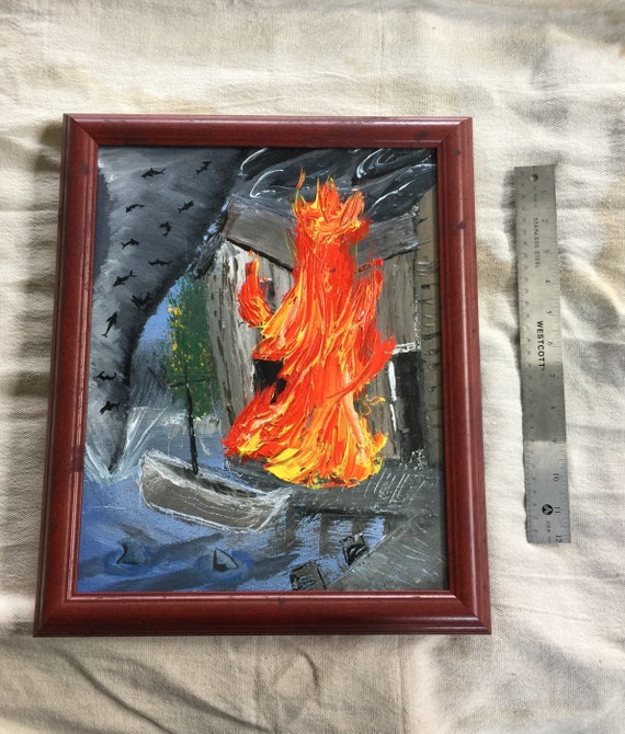 Sharknado And Burning Docks Thrift Store Monster Painting In Etsy