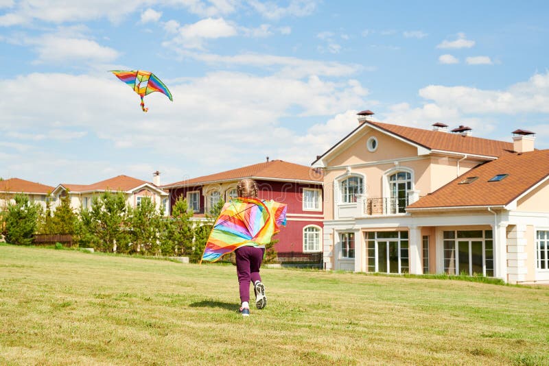 Funzionamento Della Ragazza Con L Aquilone Fotografia Stock Immagine Di Aquilone Ragazza