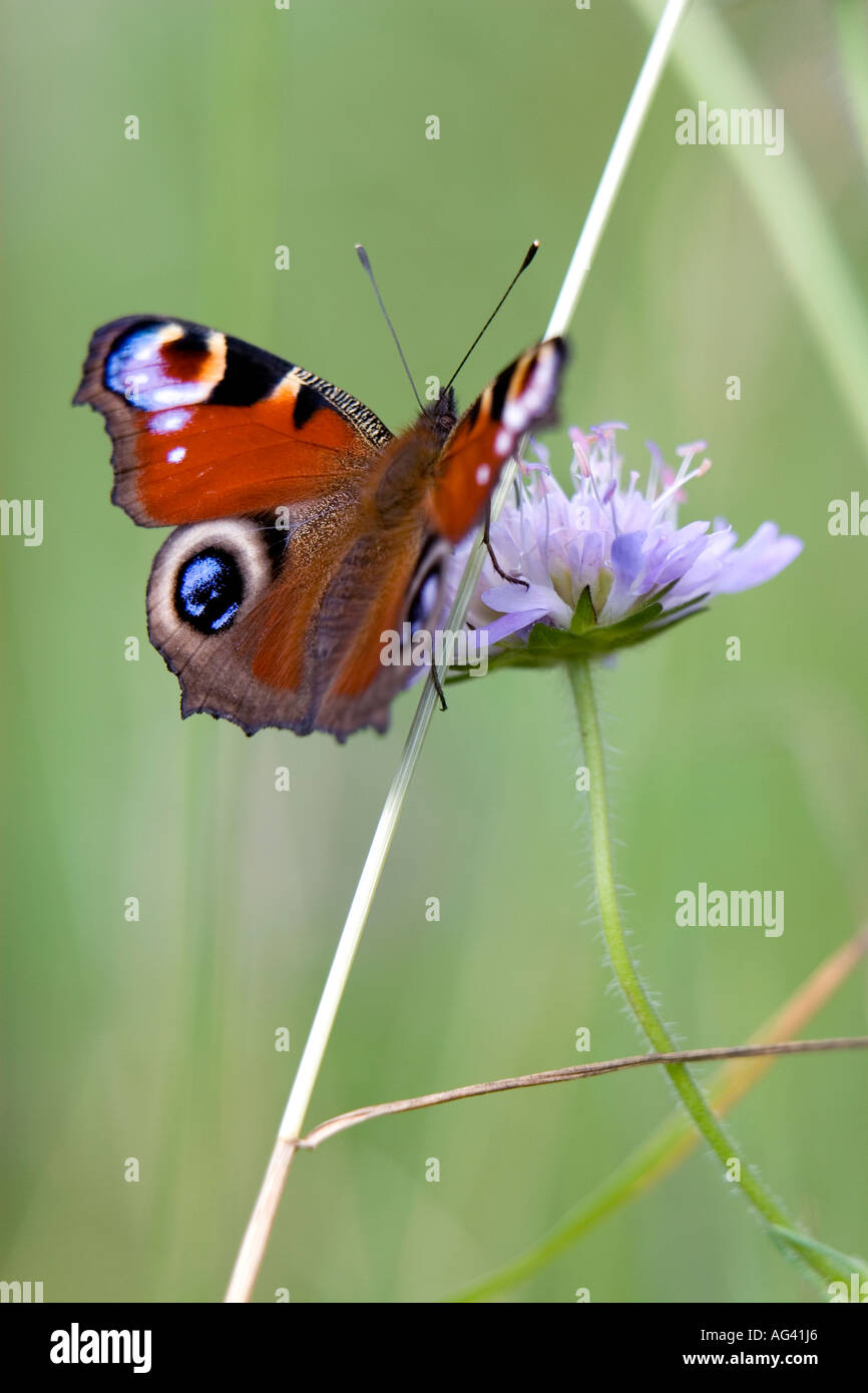 Aglais Io Farfalla Pavone Su Field Scabious Nella Campagna Inglese Foto Stock Alamy