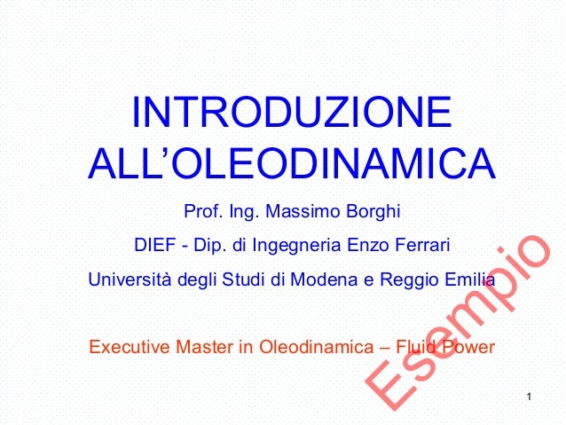 Executive Master Oleodinamica Dispense Modulo 1 Prof Ing Borghi