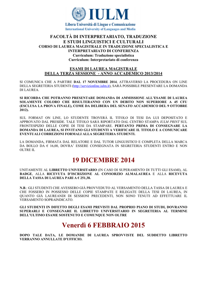 Calendario Sedute Di Laurea Della Sessione Di Laurea Di Novembre Traduzione E Interpretariato Universita Di Genova