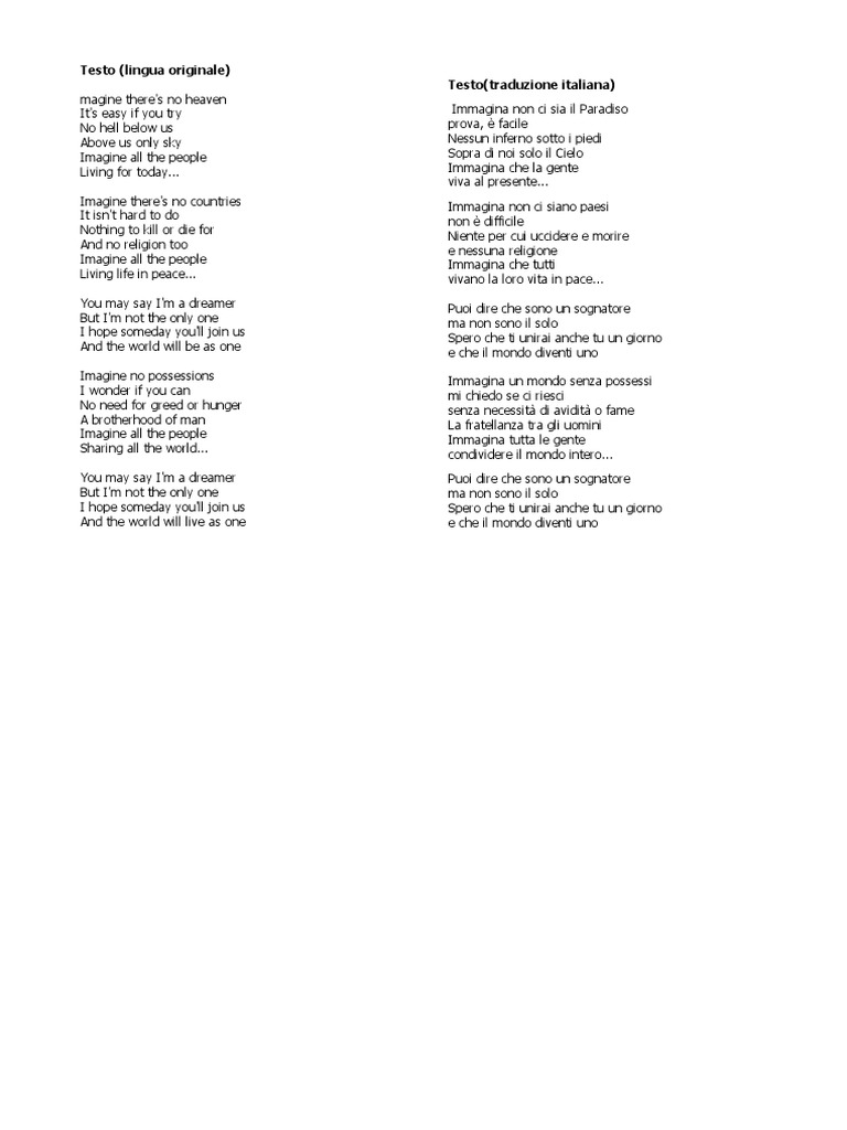 Testo Traduzione E Commento Della Canzone Imagine Dell Ex Cantante Dei Beatles John Lennon Docsity