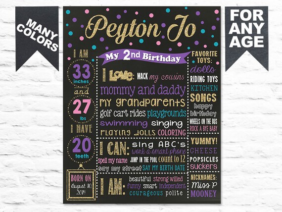 Printable Confetti First Birthday Chalkboard Sign 2nd Birthday Etsy