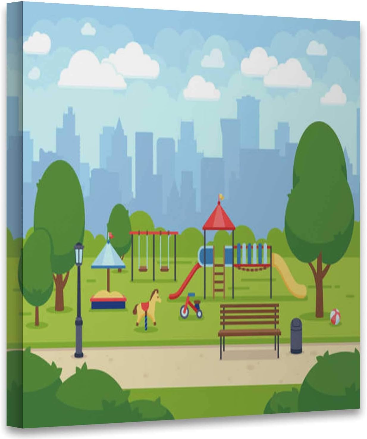 Amazon Com Urban Summer Public Garden With Kids Playground Cartoon Vector City Park Cityscape Illustration Usa Art Print For Living Room Natural Parkland Art Print Stickers 12x12in Posters Prints