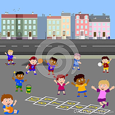 Children Playing At School Playground Illustration Stock Vector Image Art Alamy