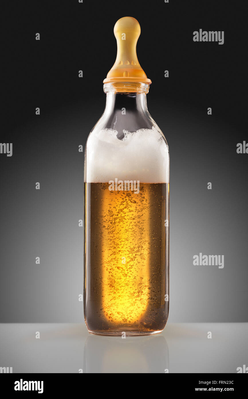 Un Biberon Con Il Nipplo Pieno Di Birra Come Una Sostituzione Del Latte Per Neonati Foto Stock Alamy