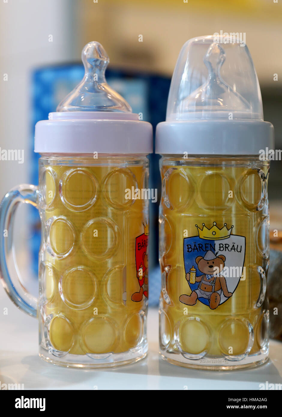 Norimberga Germania Il 1 Febbraio 17 Biberon Nelle Forme Di Boccali Di Birra Puo Essere Visto Presso Lo Stand Del Costruttore Tedesco Paul Der Bar Al 68esimo Salone Internazionale Di Norimberga Germania