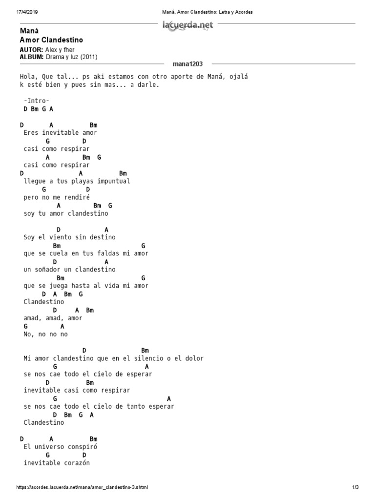 Create Make social videos in an instant use custom templates to tell the right story for your business Live Streaming Broadcast your events with reliable, highquality live streaming. El amor clandestino es una frase que quiere gritar pero no lo puedes apagar;. Acordes de Amor Clandestino, Maná Letra y Acordes de Guitarra escuchen bien la cancion para saber bien el tiempo y los detalles que hace en algunas notas con el movimiento de manos (m) eso no lo puse xq me dio fiaca xD Armonica en D Intro (3b)ua(4)(5)5(4)4(5)5(4)4 4(4)(5)5(4)4(5)5(4)4(4) Solo del Medio aprox 134 (3b)ua(4)(5)5(4)4(5)5(4)(3)3 (3)(4)4(3) 4(4)(5)5(4)4(5)5(4)4 (4)4 3(3)ua 4.