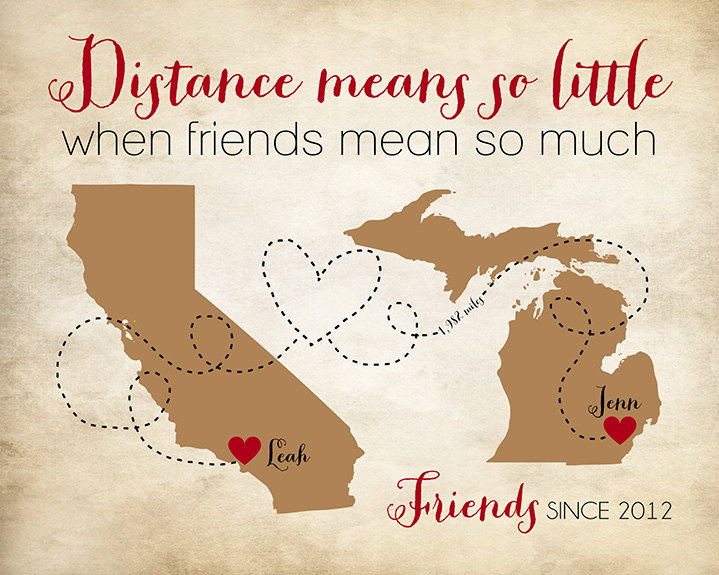 Custom Best Friend Going Away Gift Popular Friend Gift Personalized Map Quote Distance Means So Little When Someone Means So Much Wf135