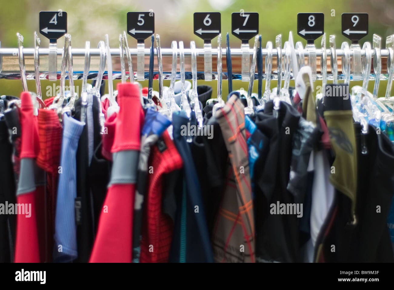 Appendino Con Vestiti Di Varie Dimensioni Sul Bastone Appendiabiti Foto Stock Alamy