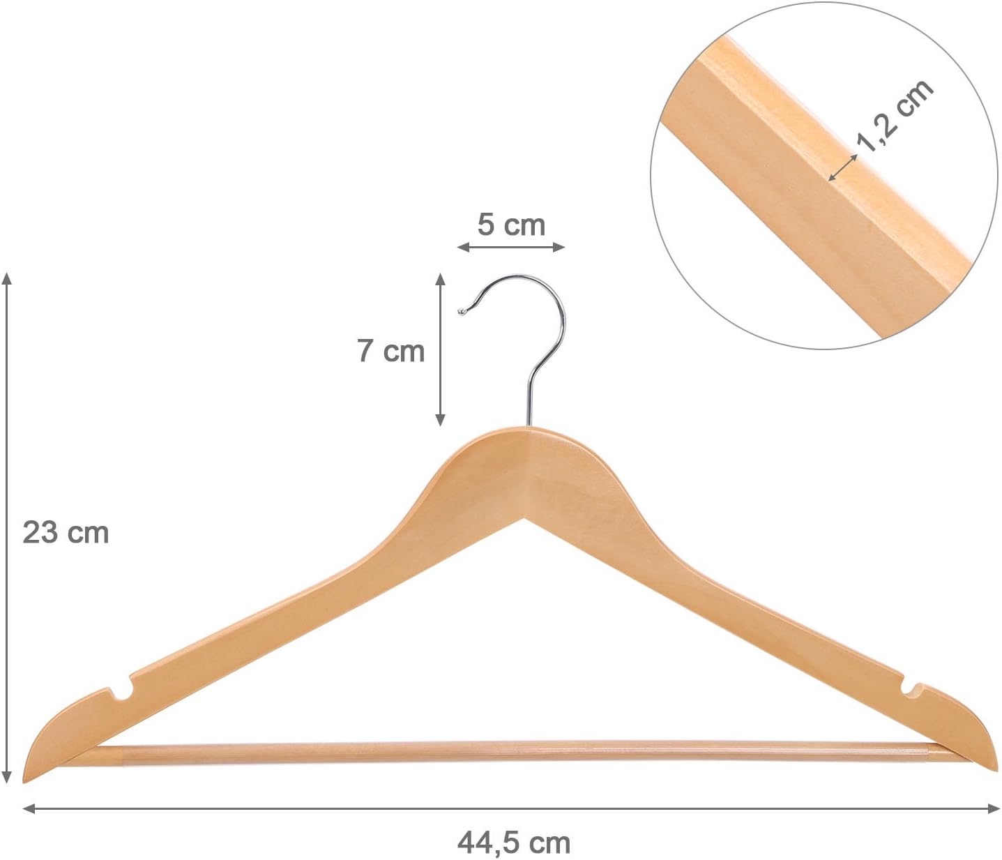 Songmics Grucce Appendiabiti In Legno Dacero Per Vestiti E Giacca 44 5 Cm Con Tacche E Barra Per Pantaloni Girevoli A 360 Colore Naturale Crw001 Pz Grucce E Appendini Grucce