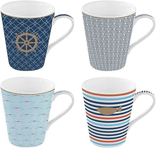 Easy Life Set 4 Mug In Porcellana 300ml Bord De Mer Amazon It Casa E Cucina