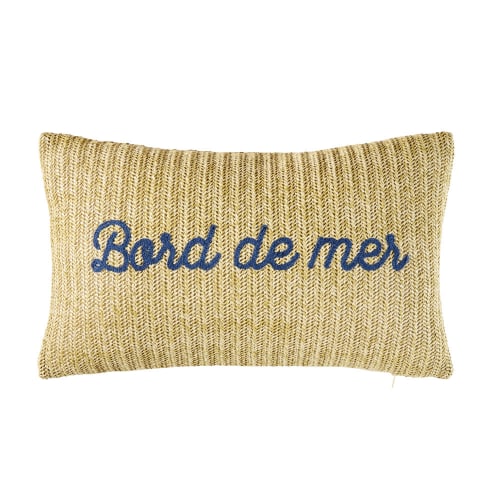 Cuscino Da Esterno Intrecciato E Parole In Corda Blu 30x50 Cm Bord De Mer Maisons Du Monde