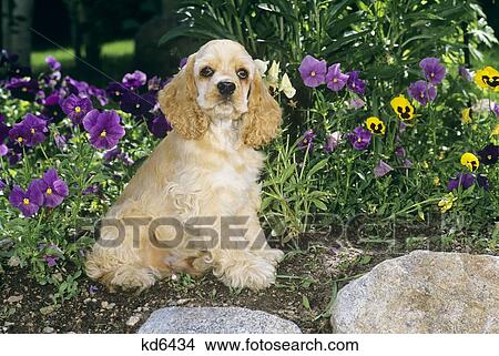 Cocker Spaniel Cucciolo Seduta In Giardino Immagine Kd6434 Fotosearch