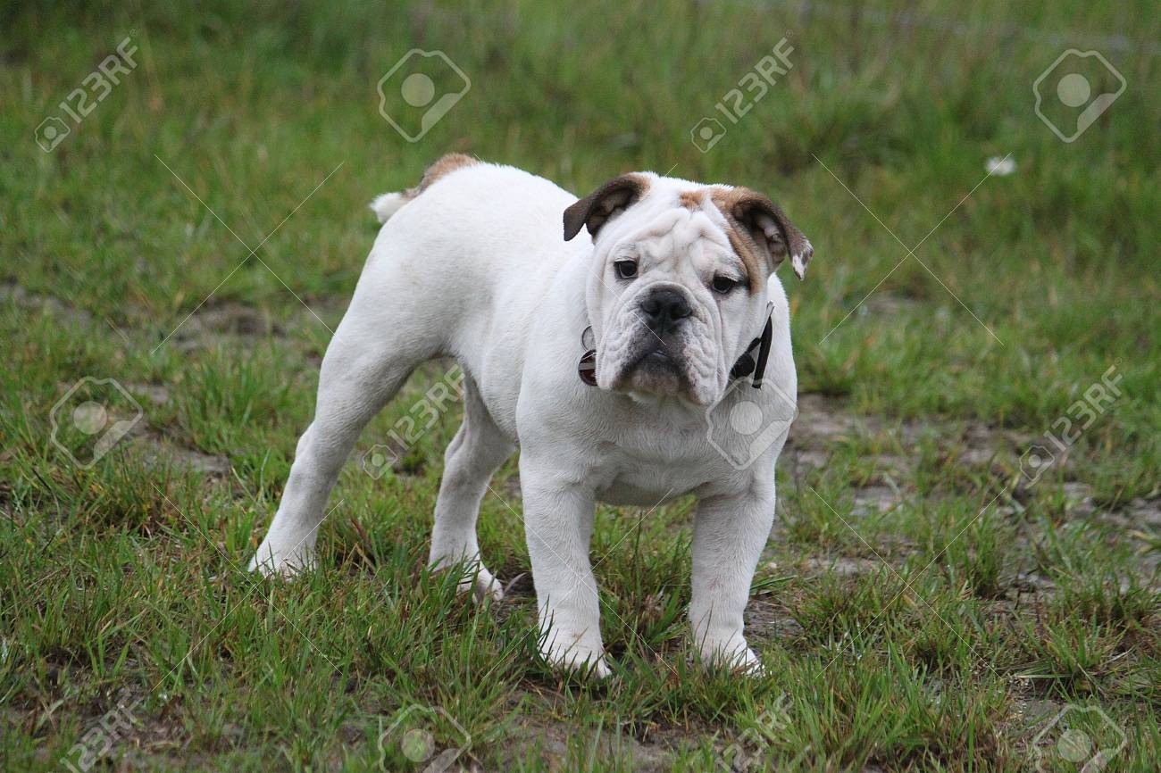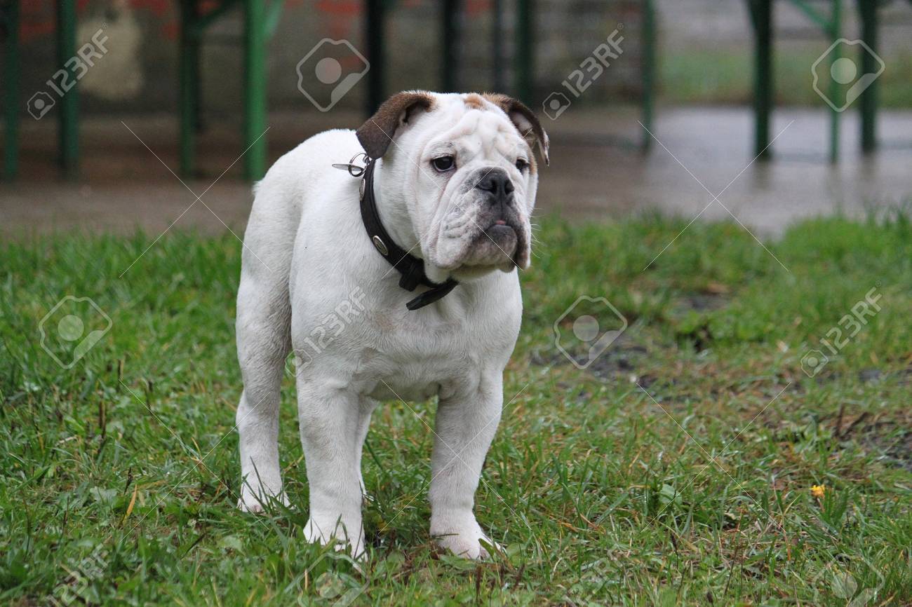 Immagini Stock Bulldog Inglese E In Piedi Nel Giardino Image