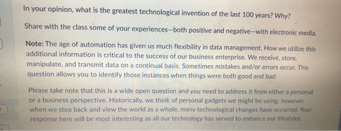 Solved In Your Opinion What Is The Greatest Technologica Chegg Com