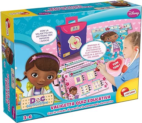 Valigetta del dottore originale della serie Disney Dottoressa Peluche Così anche le bambine a casa possono trasformarsi in piccole dottoresse Contenuto una valigetta dottore, un otoscopio, un termometro, una siringa, un misuratore di pressione, uno stetoscopio con lucina, una fasciatura, 11 adesivi. La produzione di giochi di Dottoressa Peluche è molto ampia e non è semplice orientarsi e cercare di capire quale potrebbe essere la scelta migliore Abbiamo selezionato per voi alcuni giochi Dott Peluche con un ottimo rapporto qualità – prezzo , in grado di soddisfare le esigenze dei bambini e permettere loro di imparare alcuni valori molto importanti attraverso una bella esperienza di gioco. Giochi Preziosi Dottoressa Peluche Carrellino delle Cure di Dottie, con Luci e Suoni.