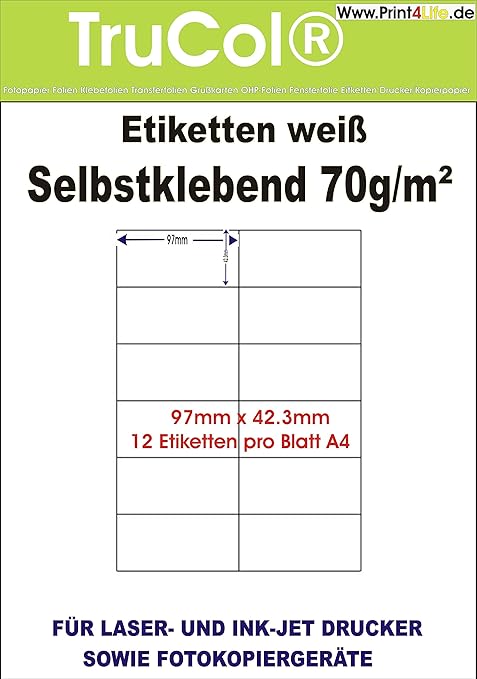 Etiqueta Etiquetas Blancas 97 X 42 3 En El Formato Din 25 100 1000 Hojas Din 70 G M Adecuado Para Impresora De Inyeccion De Tinta Impresoras Laser Y Fotocopiadoras 100 Blatt 10 Etiketten Amazon Es Informatica