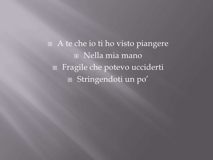 "Quando ti ho vista arrivare bella così come sei non mi sembrava possibile che tra tanta gente che tu ti accorgessi di me È stato come volare qui dentro camera mia come nel sonno più dentro di te io ti conosco da sempre e ti amo da mai Fai finta di non lasciarmi mai anche se dovrà finire prima o poi questa lunga storia d'amore. Download Quando Ti Ho Vista Arrivare Bella Cos Come Sei Testo free 11/30/17 0 Comments TUTTI PREDICANO IL “QUI E ORA” CHE COS’E’?. Quando ci saremo viste di nuovo ti racconterò il mio segreto When we will have seen each other again, I will tell you my secret ancora non ti ho detto il mio segreto Vista dall'esterno, la situazione non è molto positiva 3 Sei una vista stupenda.