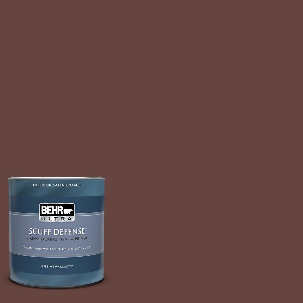 Behr Ultra 1 Qt S G 730 Tawny Port Extra Durable Satin Enamel Interior Paint Primer The Home Depot