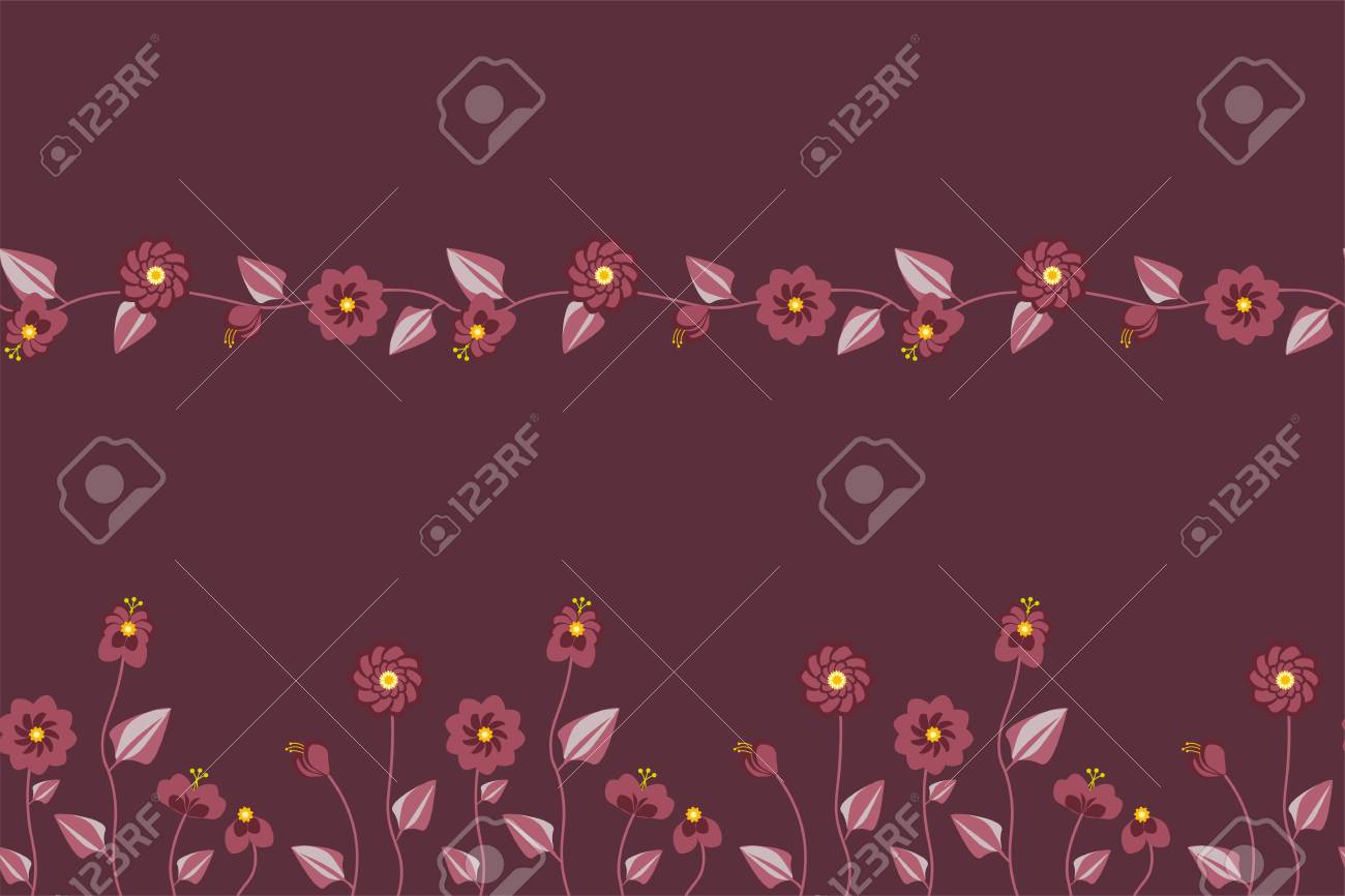 2 Seamless Patterns With Tawny Port Color Set Of 2 Seamless Patterns Of Flowers From The Meadow In Tawny Port Color Palette