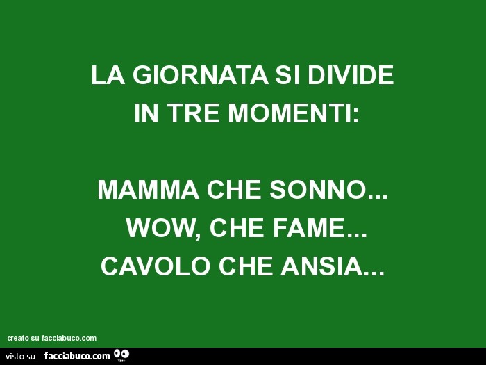 Una Giornata E Fatta Di Tre Momenti Mamma Che Sonno Madonna Che Fame Minchia Che Ansia Facciabuco Com