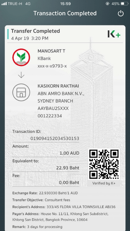 Global Outward Via K Plus Kasikornbank
