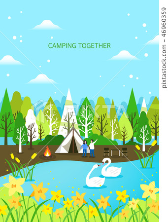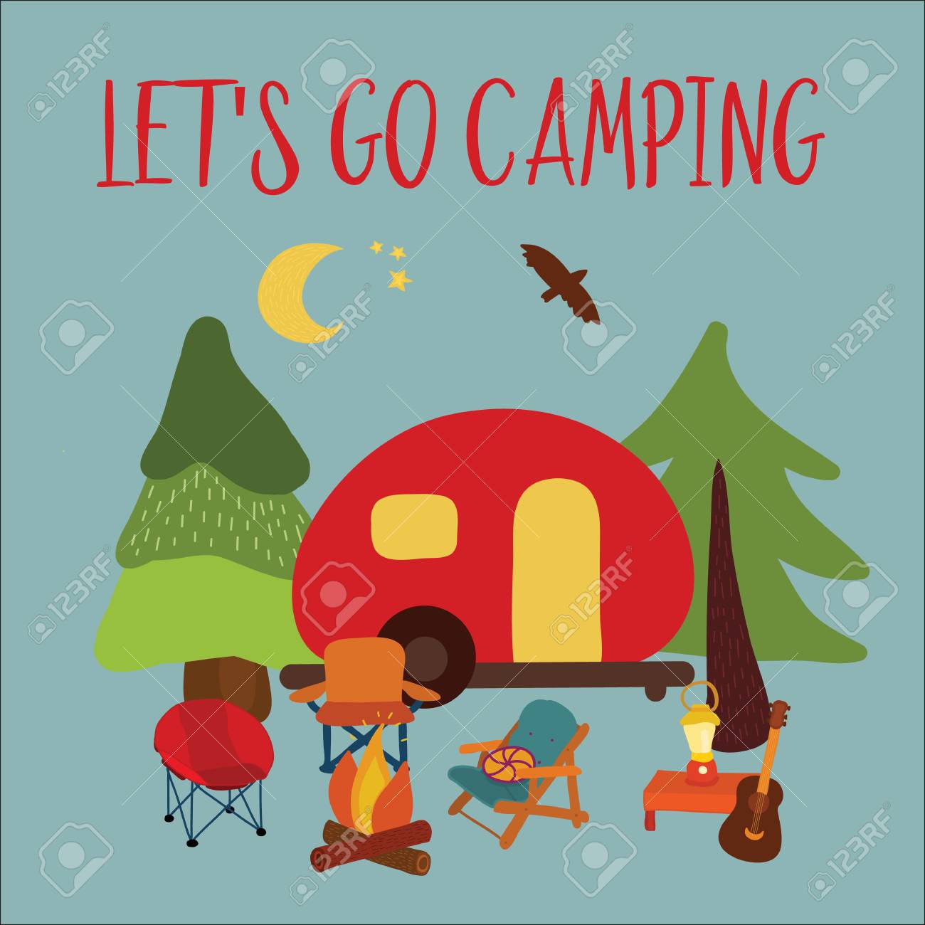 Travel Vector Illustration Lets Go Camping Summer Camping Scene Stock Photo Picture And Royalty Free Image Image