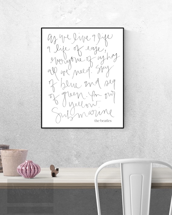 Yellow Submarine Beatles Con Lettere Mano Testi Download Etsy