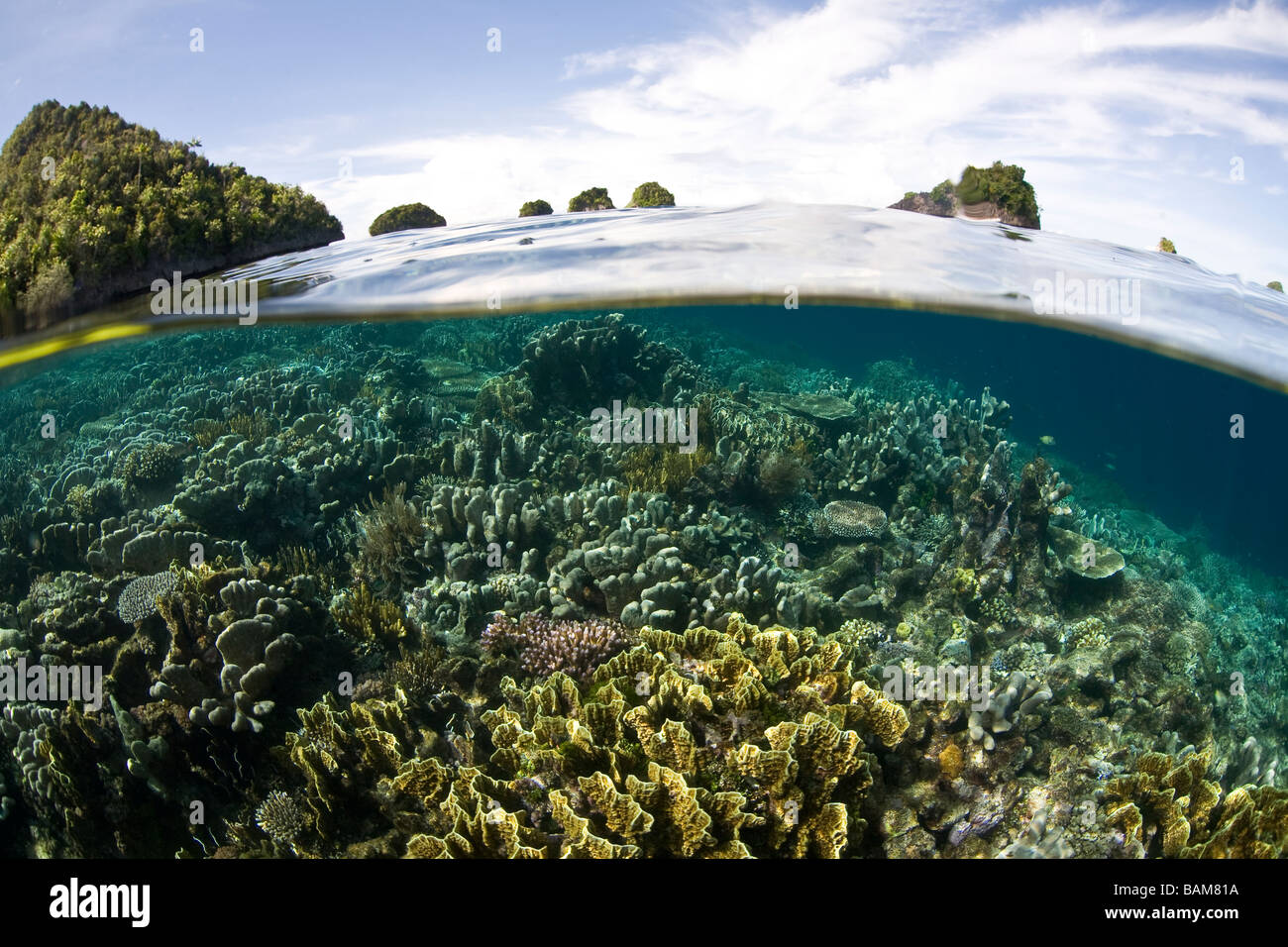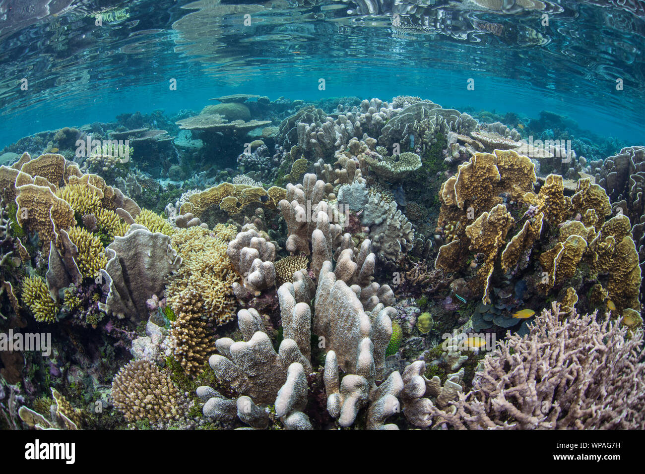 Coralli Prosperano In Acque Poco Profonde In Mezzo Alle Isole Remote Di Raja Ampat Indonesia Questa Regione Equatoriale E Il Centro Per La Biodiversita Marina Foto Stock Alamy