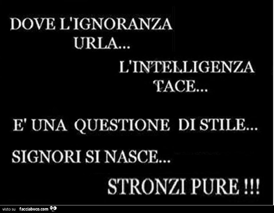 Dove L Ignoranza Urla L Intelligenza Tace E Una Questione Di Stile Signori Facciabuco Com