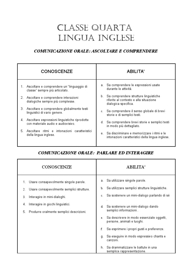 Classe Quarta Lingua Inglese