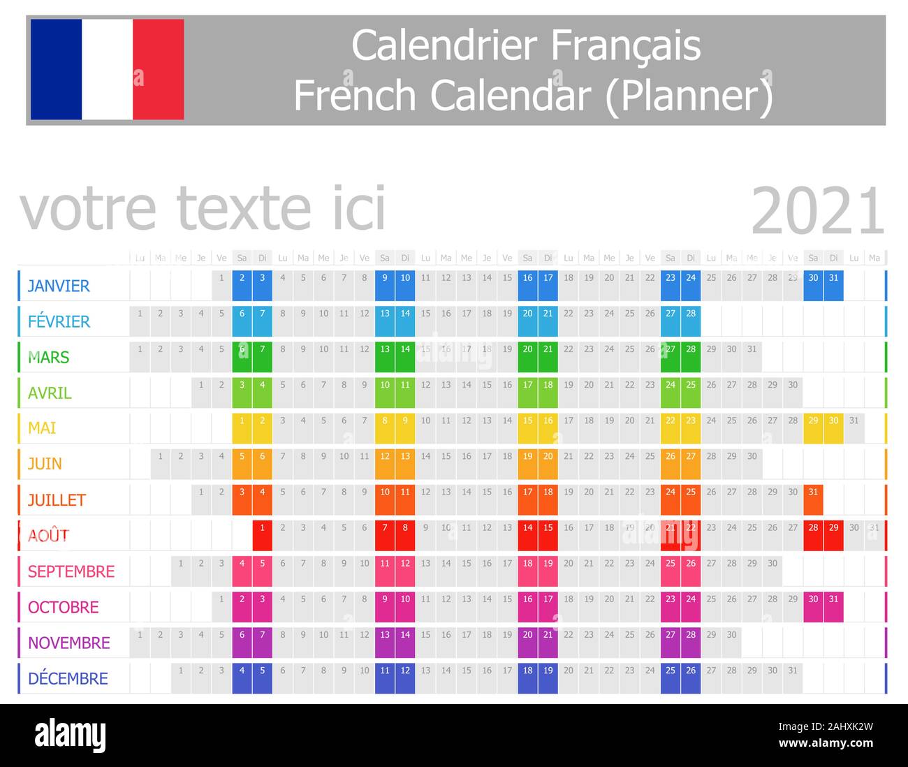 21 Francese Planner Calendario Con Mesi Orizzontali Su Sfondo Bianco Immagine E Vettoriale Alamy