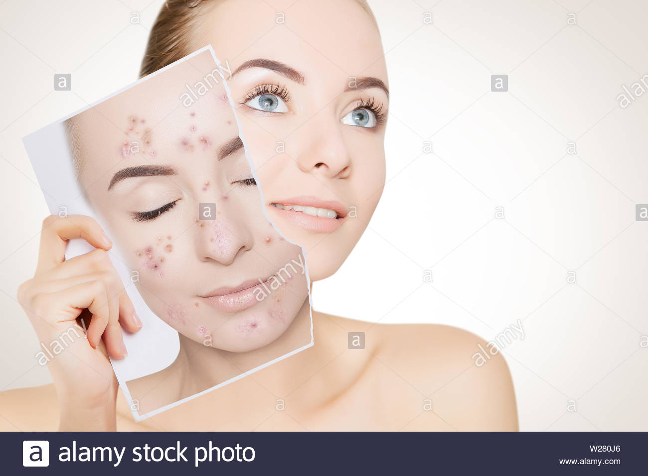 Closeup Ritratto Di Donna Con La Pelle Pulita Azienda Ritratto Con Pelle Pimpled Foto Stock Alamy