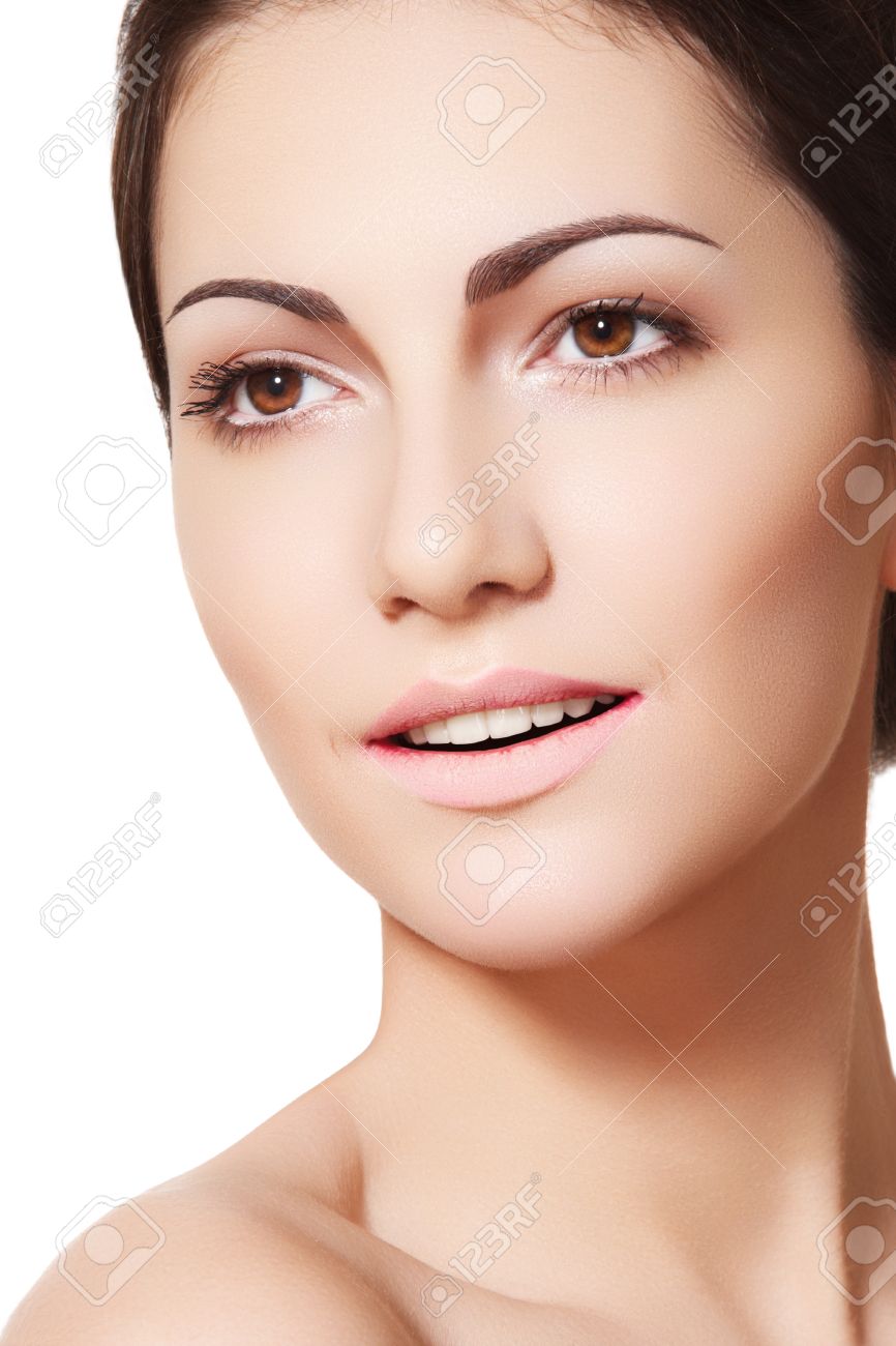 Immagini Stock Buon Viso Modello Femminile Con La Pelle Sana E Pulita Bellezza Benessere Sanita Cura Della Pelle Morbido Faccia Pulita Modello Femminile Con Trucco Naturale Carnagione Splendente Pulire Look Del