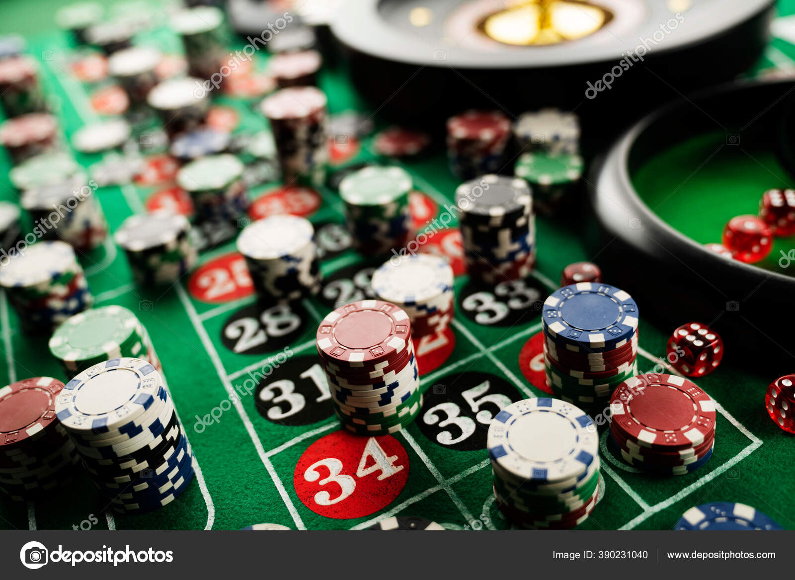 Stack Of Casino Chips On Green Felt Roulette Table With Lucky Numbers Stock Photo Download Image Now Istock