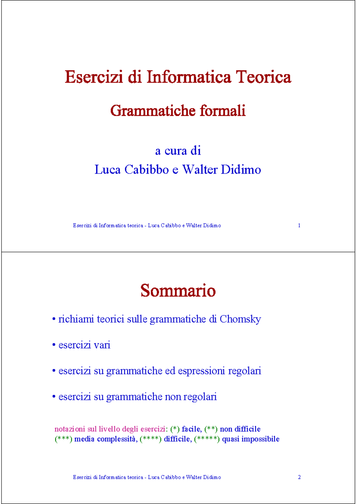 Esercitazioni Su Grammatiche Formali Informatica Teorica Studocu
