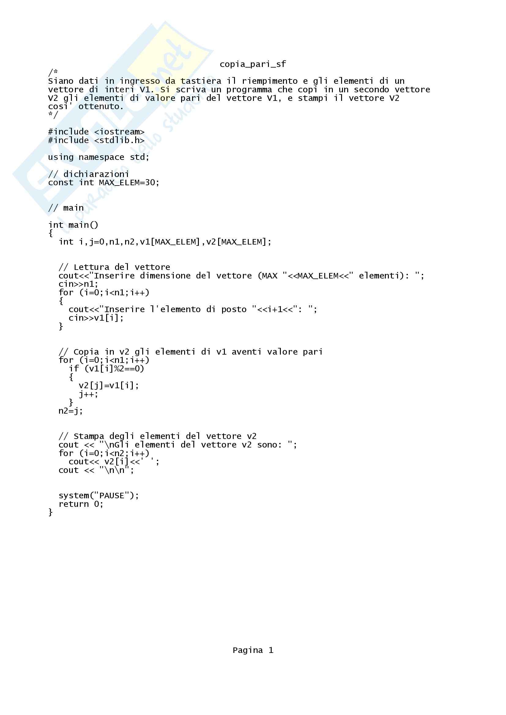 Esercizi Informatica Docsity
