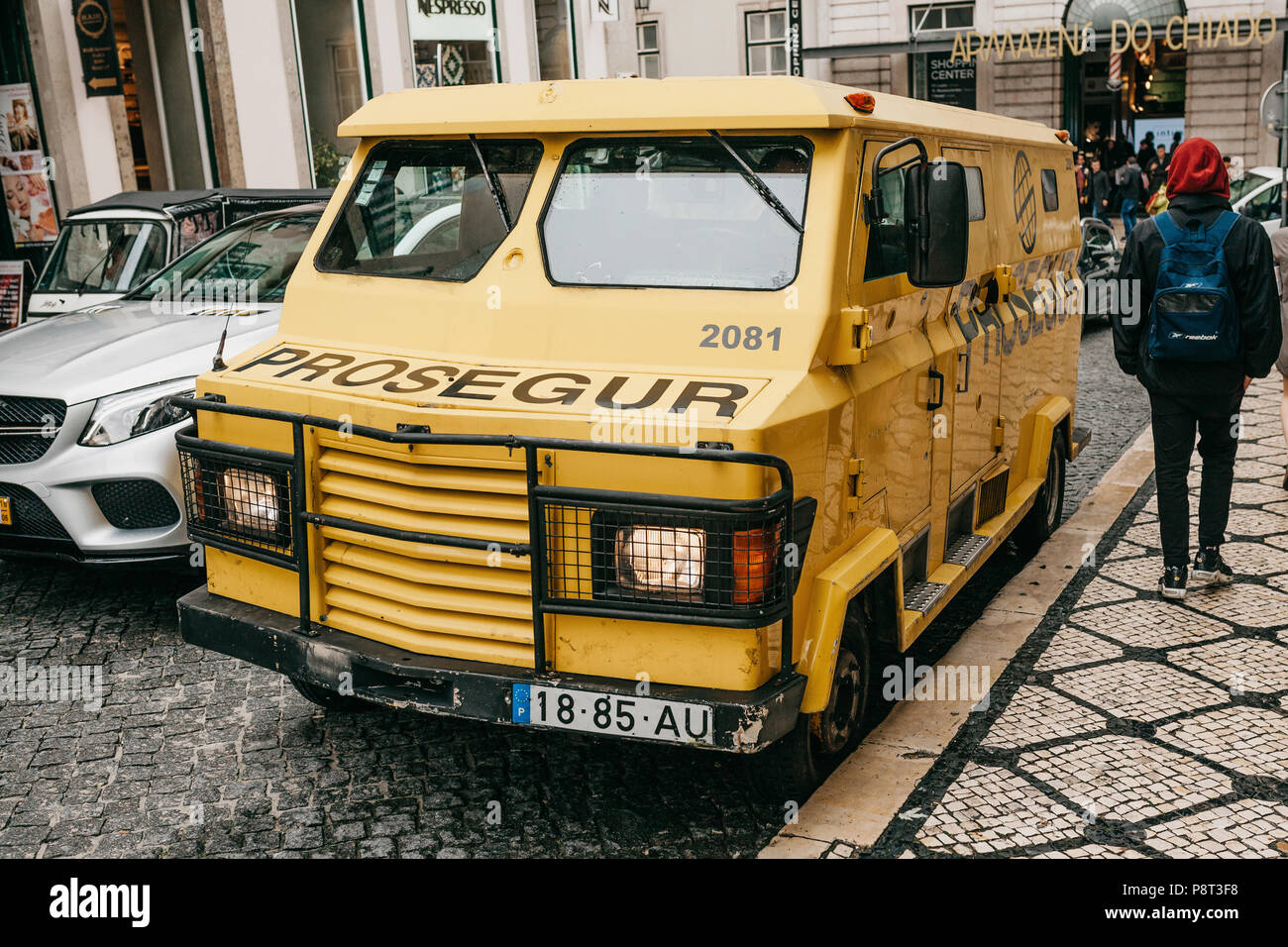 Il Portogallo Lisbona 10 Aprile 18 Furgoni Blindati Per La Distribuzione Sicura Di Denaro Alla Banca Trasporti La Riscossione Di Contanti Foto Stock Alamy