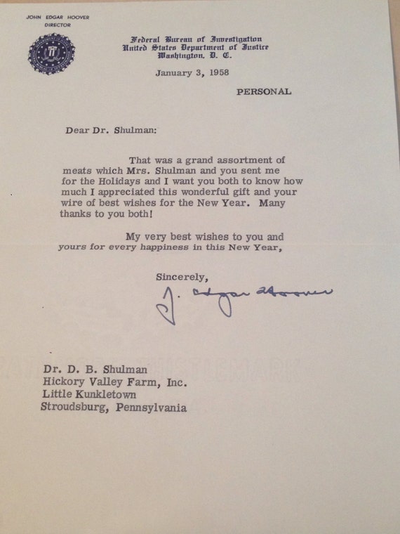 J Edgar Hoover Hanno Firmato La Lettera Su Carta Intestata Del Etsy