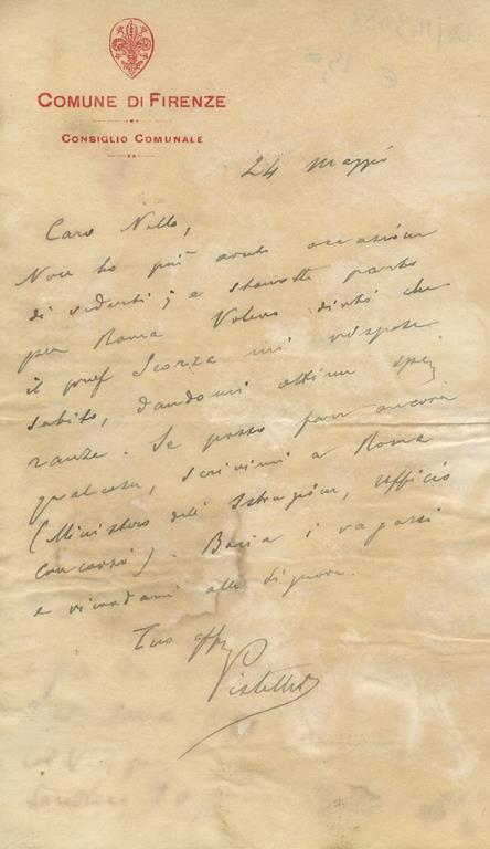 Lettera Manoscritta Autografa Firmata Stesa Su Una Facciata Su Carta Intestata Comune Di Firenze Comsiglio Comunale