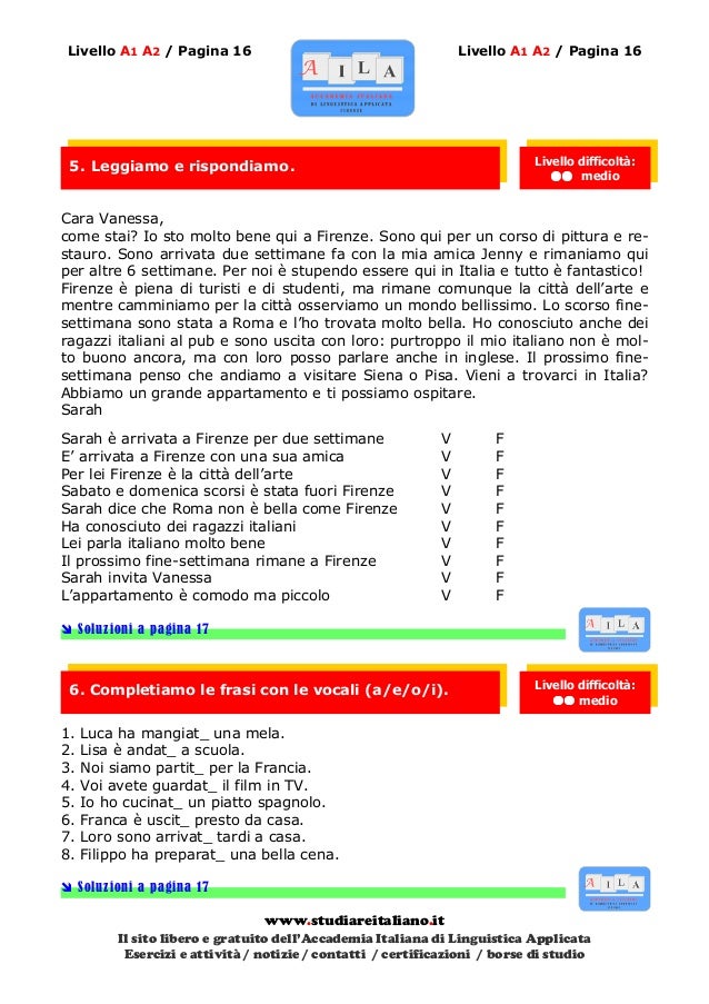 In questa pagina ci sono diversi tipi di esercizi di spagnolo Interattivi, con soluzioni ed elencati per livello A1, B1B2, C1C2!. Mi chiamo Jaklien Wotte, sono olandese A settembre del 09 ho seguito un corso intensivo di spagnolo ad iNMSOL, Granada, per due settimane, livello Sapevo parlare un po' lo spagnolo, ma volevo fare un po' di pratica di conversazione e produrre frasi, qualcosa che non ero riuscita a fare fino a quel momento. Esercizio spagnolo differenzia l'uso di piombo e prendere Benvenuti a eactivo eactivo è un blog che abbiamo creato per condividere le risorse, formazione, notizie, riflessioni e scoperte che riteniamo interessanti per insegnare e imparare lo spagnolo Qui potrete trovare esercizi di altri.