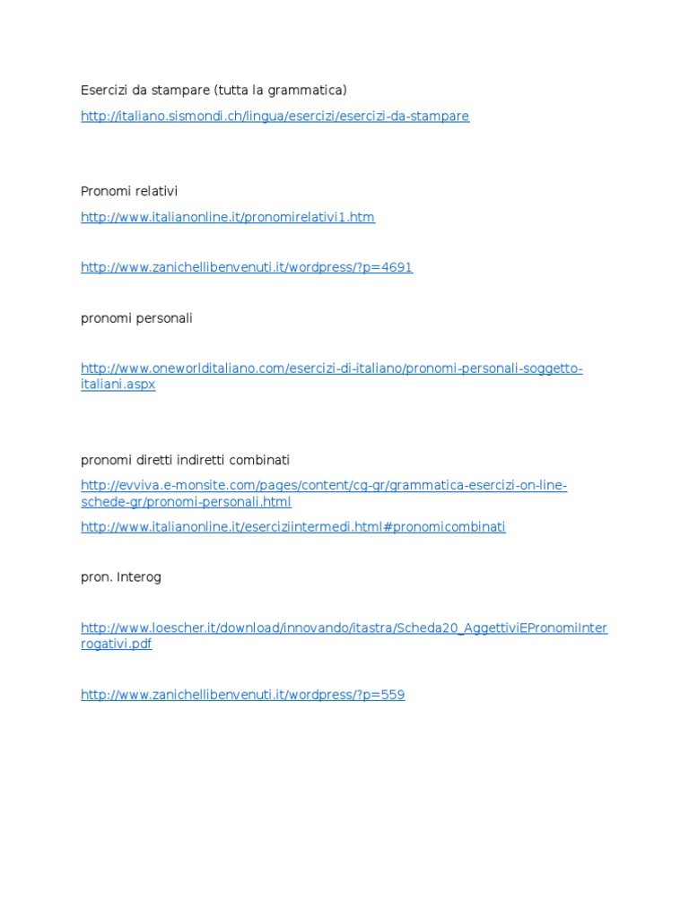 Italiano Online Pronomi Relativi E Misti Pdf Download Gratuito