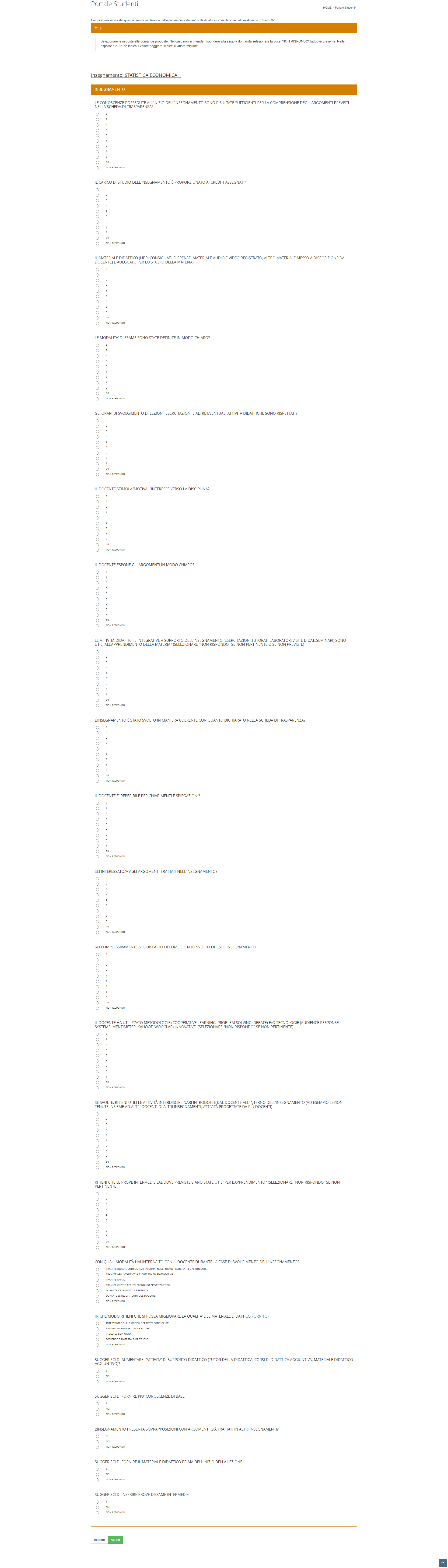 Fac Simile Del Questionario Per Studenti Frequentanti Portale Dello Studente