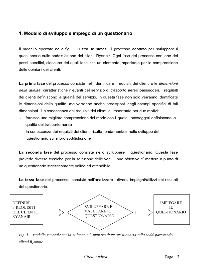 Misurare La Soddisfazione Dei Clienti Ryanair Progettazione Test Implementazione Di Un Questionario E Tecniche Per L Analisi Dei Risultati Indice Pagina 1 Di 2