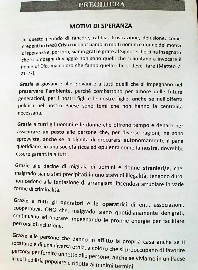Vorrei soffermarmi oggi sulla preghiera di ringraziamento E prendo lo spunto da un episodio riportato dall’evangelista Luca Mentre Gesù è in cammino, gli vengono incontro dieci lebbrosi, che implorano «Gesù, maestro, abbi pietà di noi!” (17,13) Sappiamo che, per i malati di lebbra, alla. Perseveranti nella preghiera, solleciti per le necessità dei fratelli, premurosi nell'ospitalità Rendi il nostro amore seme del tuo Regno Custodisci in noi una profonda nostalgia di te fino al giorno in cui potremo, insieme con i nostri cari, lodare in eterno il tuo nome Amen. Preghiera di ringraziamento Seleziona una registrazione audio Preghiera di ringraziamento Mostra il testo Nascondi il testo 1 Onnipotente, Datore di vita, a te apriamo il cuore perché, Geova, tu ascolti le nostre preghiere Con umiltà ci inchiniamo a te L’imperfezione ci porta a sbagliare.