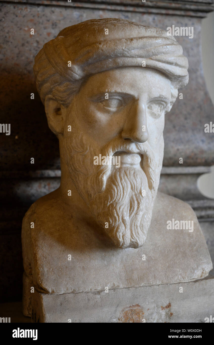 Roma Italia Busto De Retrato Antiguo Filosofo Y Matematico Griego Pitagoras De Samos Ca 570 Ca 495 En La Sala De Los Filosofos Ca Fotografia De Stock Alamy