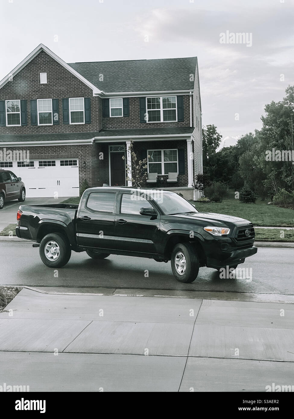Big Black Truck Pulling Out Of Driveway Stock Photo Alamy