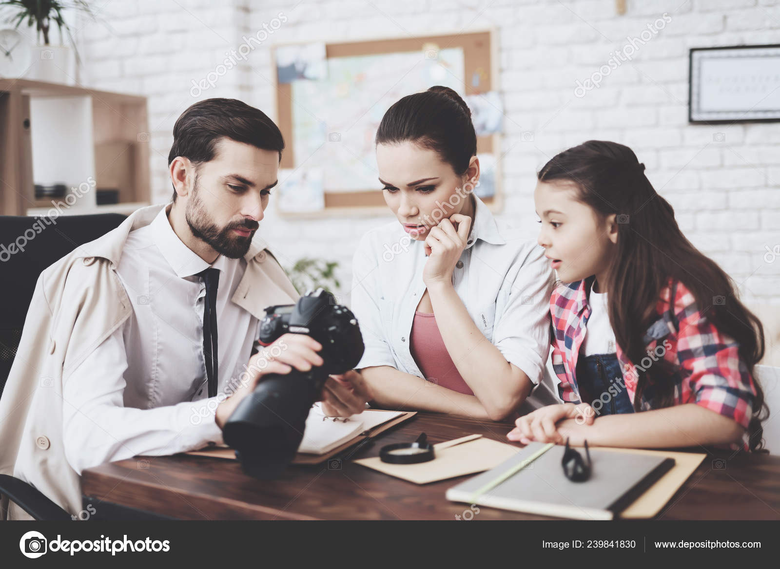 Private Detective Agency Man Is Showing Clients Photos On Camera Stock Photo C Stockveres Gmail Com