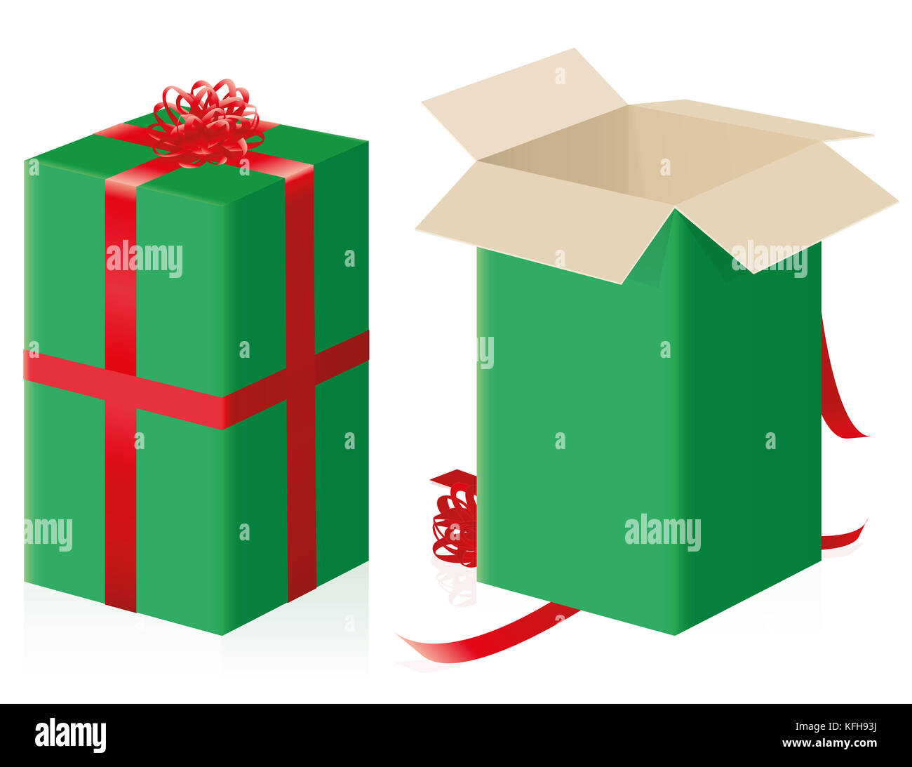 Chiuso Aperto Un Pacchetto Regalo Elevate Dimensioni Pacco Verde Con Carta Da Imballaggio E Nastri Rossi Illustrazione Su Sfondo Bianco Foto Stock Alamy